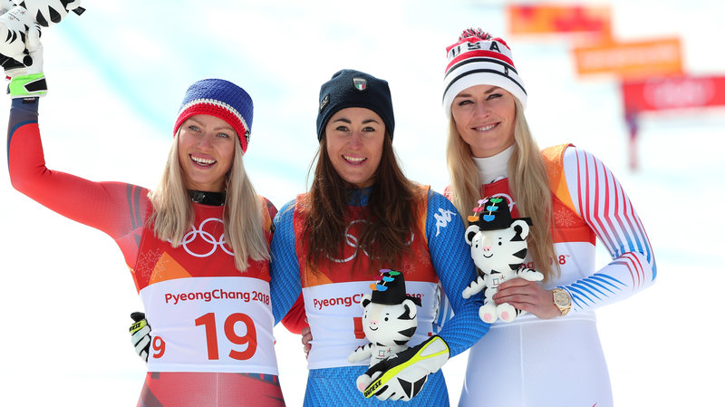 | Ester Ledecka powers down the parallel giant slalom course en route to her second gold medal of the 2018 Winter Games. (Martin Bureau / Associated Press) |